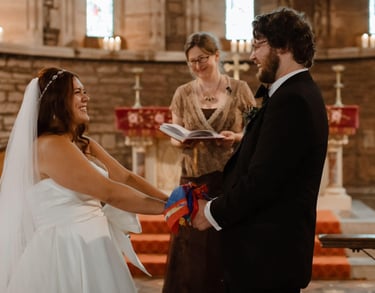 Eine eindrucksvolle Feier, die zwei Kulturen – Schottland und Litauen – auf einzigartige Weise verbindet, mit bewegenden Gelübden, traditionellen Elementen wie dem Handfasting und liebevoll integrierten Bräuchen, die ihre gemeinsame Geschichte und Verbundenheit spürbar machen.