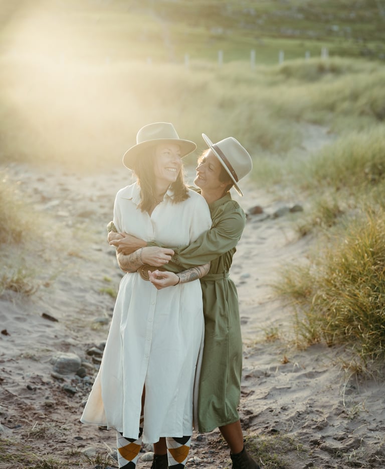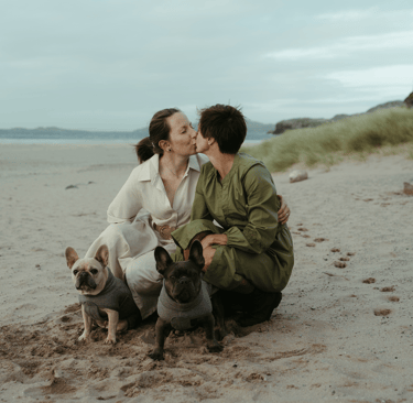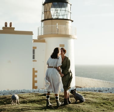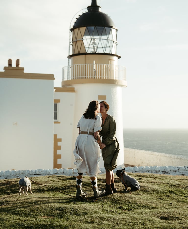 Wir hatten diesen Tag lange herbeigesehnt. Franziska und Anika feierten den 10. Jahrestag ihrer eingetragenen Lebenspartnerschaft und ihr Traum war es, diesen Meilenstein mit einem Handfasting an der wilden, wunderschönen Küste der Stoer-Halbinsel zu besiegeln. Dieser Ort mit seinem rauen Charme und dem ikonischen Leuchtturm erfüllte alle Wünsche für ihre ersehnte Küstenzeremonie. Sie reisten extra aus Deutschland mit ihren beiden Hunden an und nahmen sich ein paar Tage Zeit, um in der Gegend anzukommen und sich zu entspannen – etwas, das ich immer empfehle.