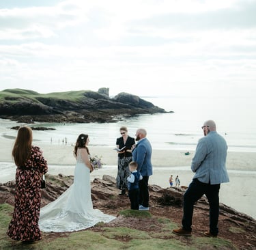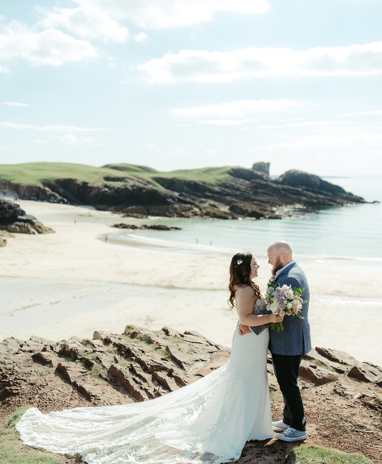 Clachtoll hat eine besondere Art, Menschen wieder zu sich zu rufen. Rachel und Kyle kannten diese atemberaubende Ecke der Küste bereits von einer unvergesslichen Reise entlang der NC500, und der Ort hatte sie offensichtlich nicht mehr losgelassen. Als sie sich also für eine Trauung im kleinsten Kreis mit ihrem kleinen Sohn und zwei engen Freunden entschieden, konnten sie sich keinen besseren Ort vorstellen, um dorthin zurückzukehren.