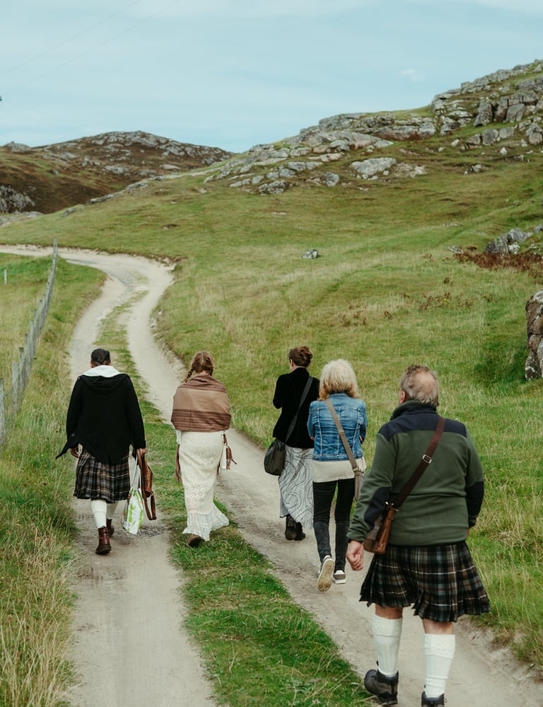 An dem Tag selbst trafen wir uns am Parkplatz. Der kleine Spaziergang zum Strand war die perfekte Gelegenheit, um nach all den E-Mails und Videocalls ganz ungezwungen ins Plaudern zu kommen. Ralph im Kilt, Tanja in ihrem wunderschönen Kleid – es war einfach ein schöner, entspannter Start.