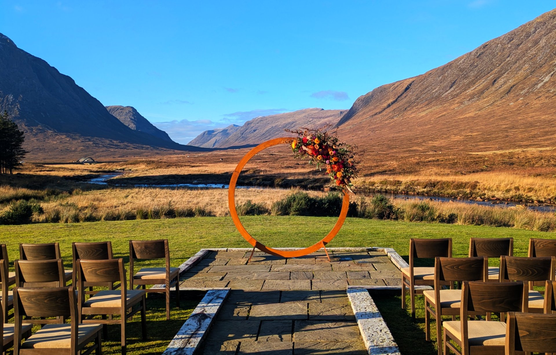On their wedding day in mid-November, we were all delighted by the weather. Glencoe was bathed in the kind of crisp, clear sunshine that feels like a gift, making the brilliant blue sky seem even more vibrant against the light dusting of snow already on the highest peaks. It was a stunning backdrop, and we all knew we were on the cusp of winter. Sure enough, the following day the snow line crept further down the mountainside. It truly felt as if the Highlands had held its breath, offering them one last perfect, golden afternoon.