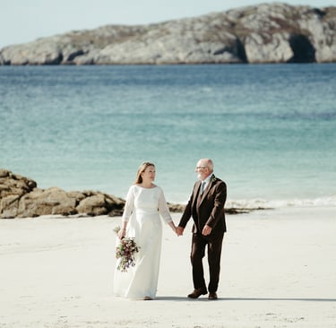 Nicola and Ray chose the quiet beauty of Achmelvich Beach for their intimate elopement, surrounded by their closest family. Their heartfelt ceremony was a celebration of a new beginning, marked by timeless vows and a quiet, steady joy that reflected their deep companionship.