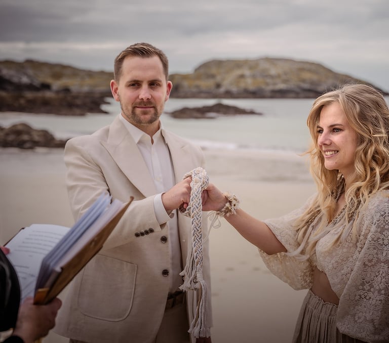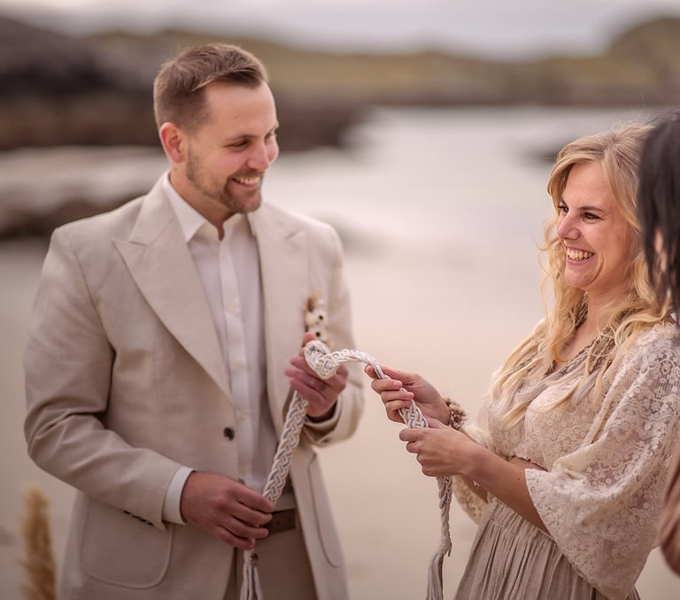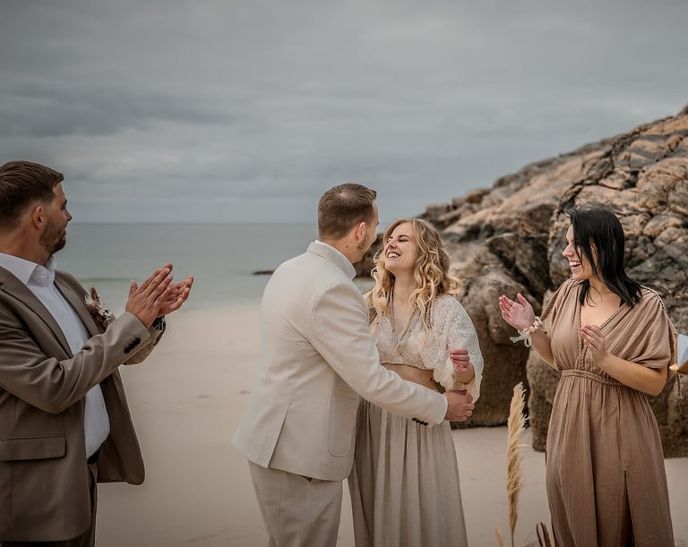 Eine fröhliche Hochzeit am Achmelvich Beach: Die Geschichte von Jenny & Remo